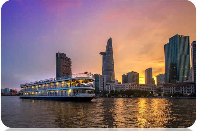 17h00 – 21h00: After a busy day of sightseeing, sit down and enjoy your dinner with variety of local dishes on the famous cruise ship in Ho Chi Minh City.