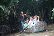 10h00 AM: The Coach/ car arrive in Tien Giang province. Tourist then experience sitting on special means of transportation which used to move around on the Tien River. Along the river’s banks, there are a lot of Coconut Trees Lines, floating houses and go through many narrow streams to visit Unicorn Island.